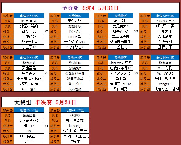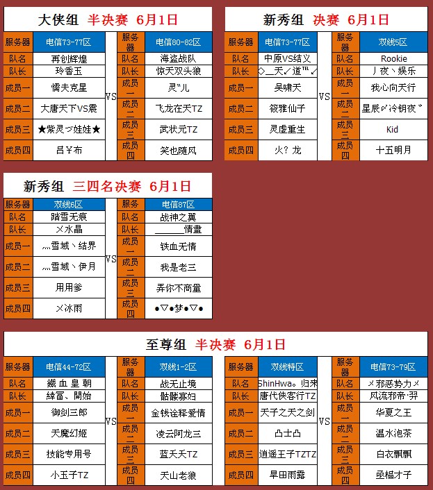 积分赛对阵表