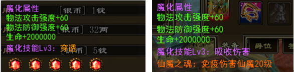 8、时装魔化新增:吸收伤害及穿透属性;魔化LV5可重置到;